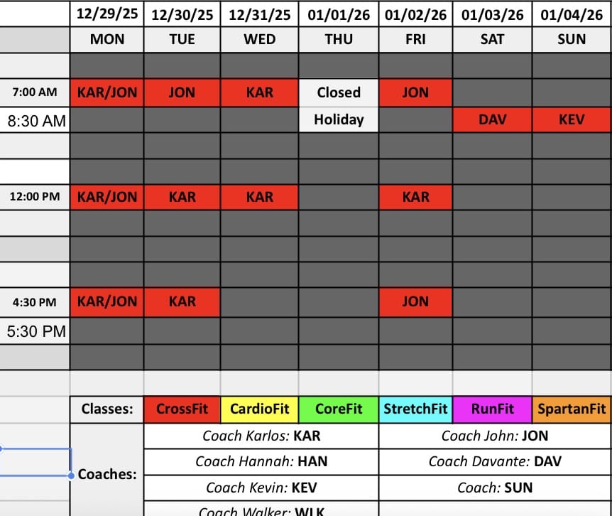 Cross Training is a high-intensity fitness program that combines varied functional movements to improve overall strength, endurance, and flexibility. This one-hour group fitness class consists of a warm-up followed by skill or strength training programmed with total body fitness in mind while learning proper safety techniques. Following the strength program is the Workout of the Day (WOD) which is a time-based activity consisting of multiple combinations of exercises that challenge every aspect of your physical fitness capability. Each day will be different, taking you to your limits and transforming you into a well-rounded fit athlete. The Cross Training program offers various modifications and scaled versions of the same movements accessible to all levels of fitness.
